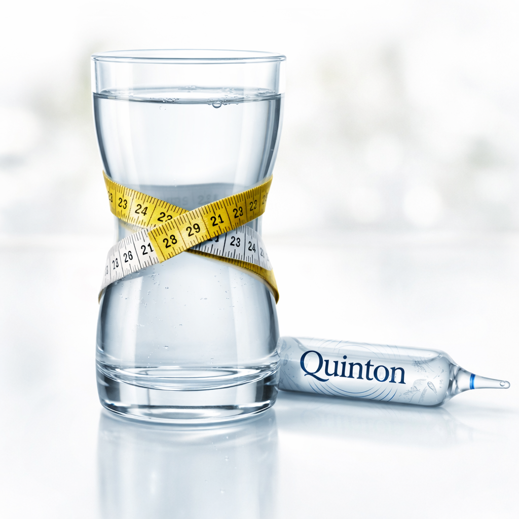 V perimenopauze a menopauze klesá schopnost udržet hořčík, sodík, draslík a vápník v rovnováze, což se projevuje únavou, křečemi, poruchami spánku a kolísající energií. Quinton dodává celé minerální spektrum najednou a v poměru, který tělo rozpozná — nikoli izolované megadávky jednotlivých minerálů.